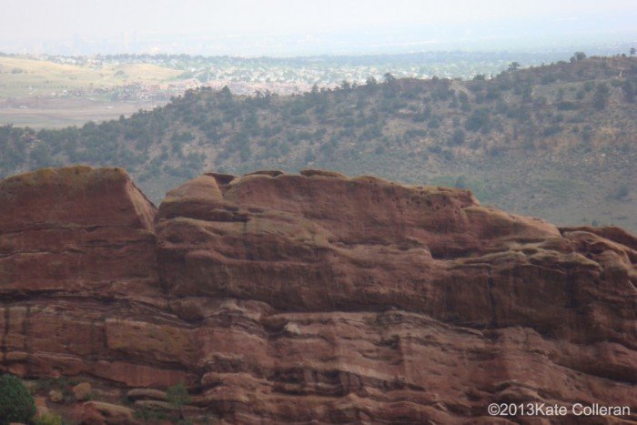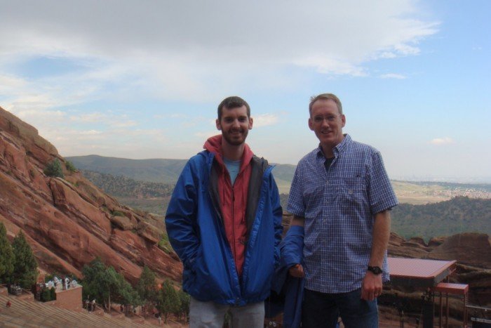Then we wandered to Red Rocks to show Scott the amphitheater – it started to rain while we were there, but not heavy, so we were able to walk up and see the view from the seating area. You can even see a little blue sky!
